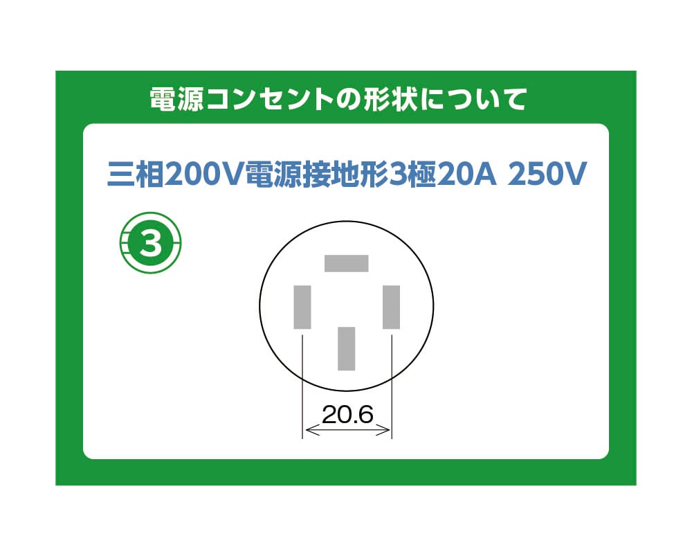 三相200V電源 接地形3極・20A・250V