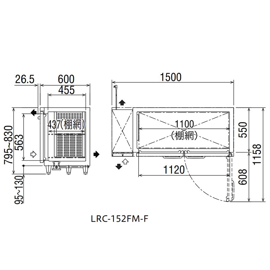 ヨコ型冷凍庫【幅1,500/薄型600/センターフリー】フクシマ・LRC-152FM-F
