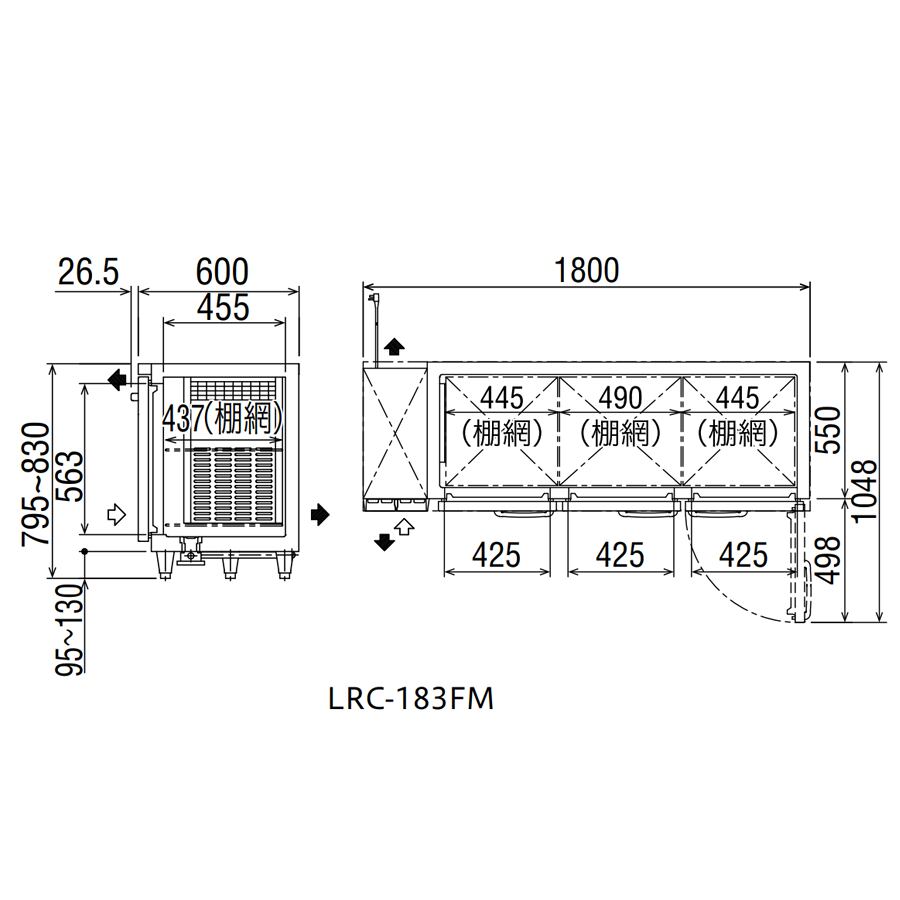 ヨコ型冷凍庫【幅1,800/薄型600】フクシマ・LRC-183FM