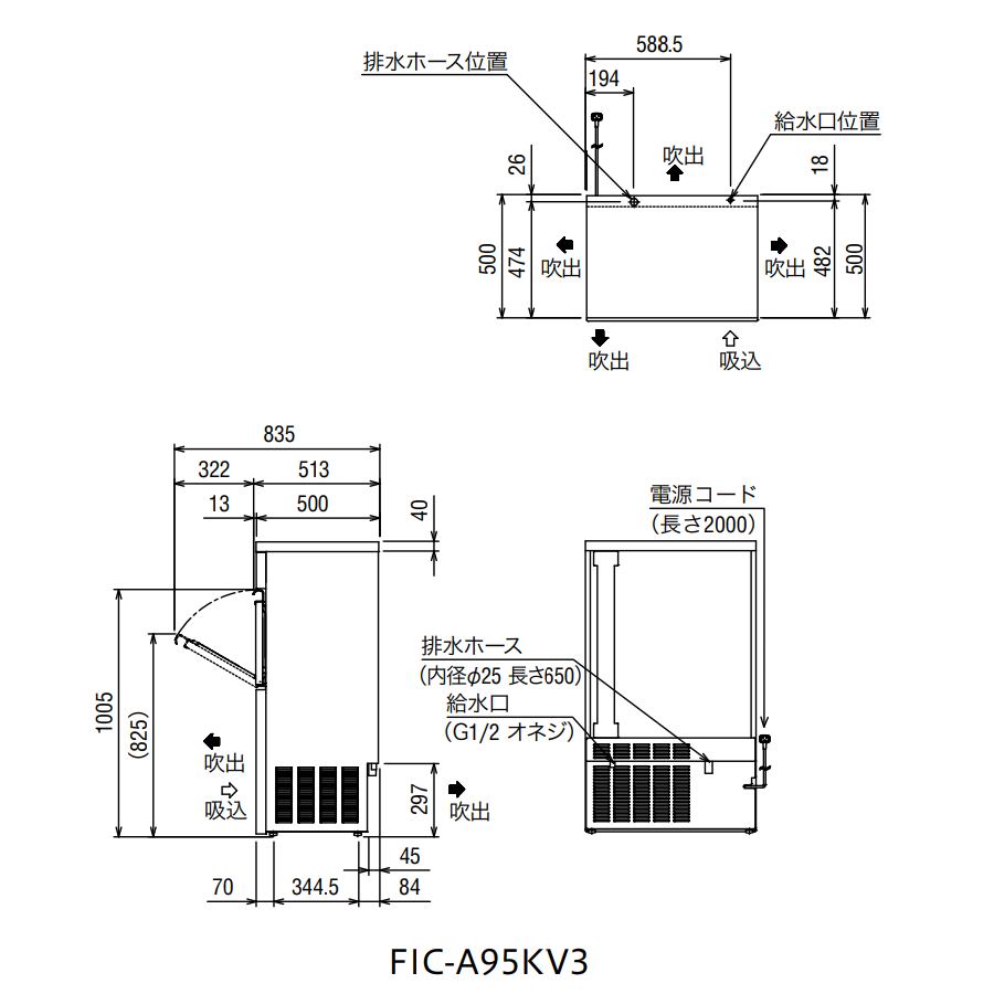 製氷機キューブアイス【95kg/バーチカル】フクシマ・FIC-A95KV3
